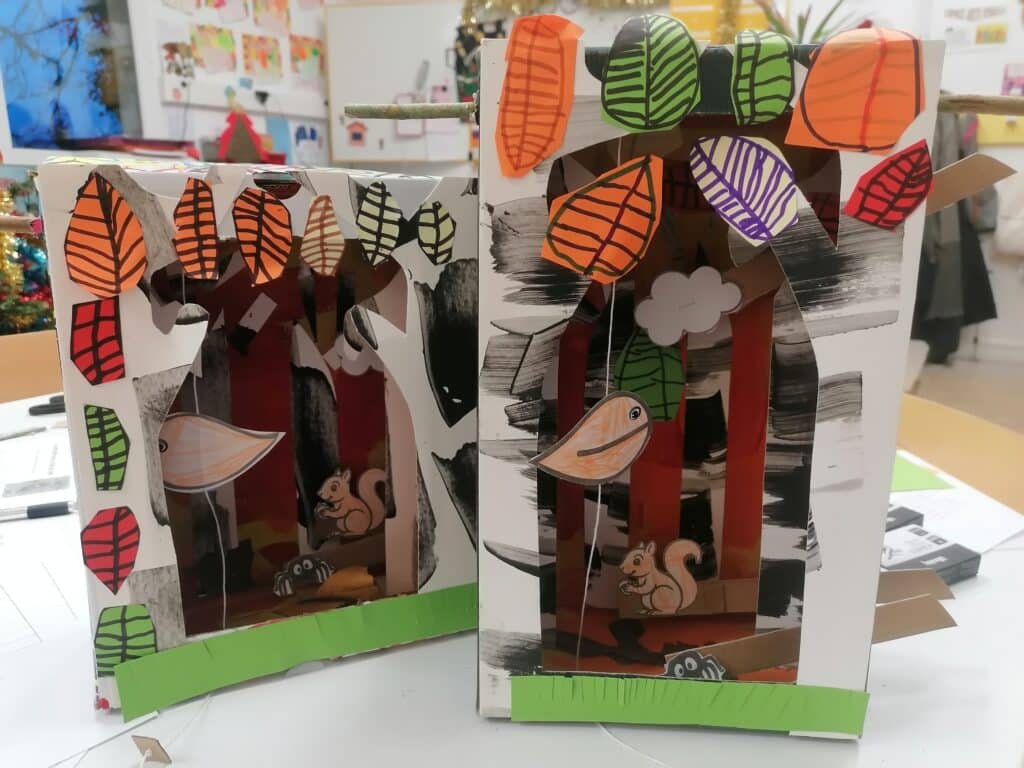 Les enfants de MS ont fabriqué une boîte à histoire. Après avoir écouté plusieurs fois « la feuille qui ne voulait pas tomber », ils ont décoré la boîte en utilisant des techniques variées ( peinture , découpage , graphisme…). Parallèlement, ils ont appris le vocabulaire et ils se sont entraînés à raconter l’histoire. Avec plaisir, ils […]